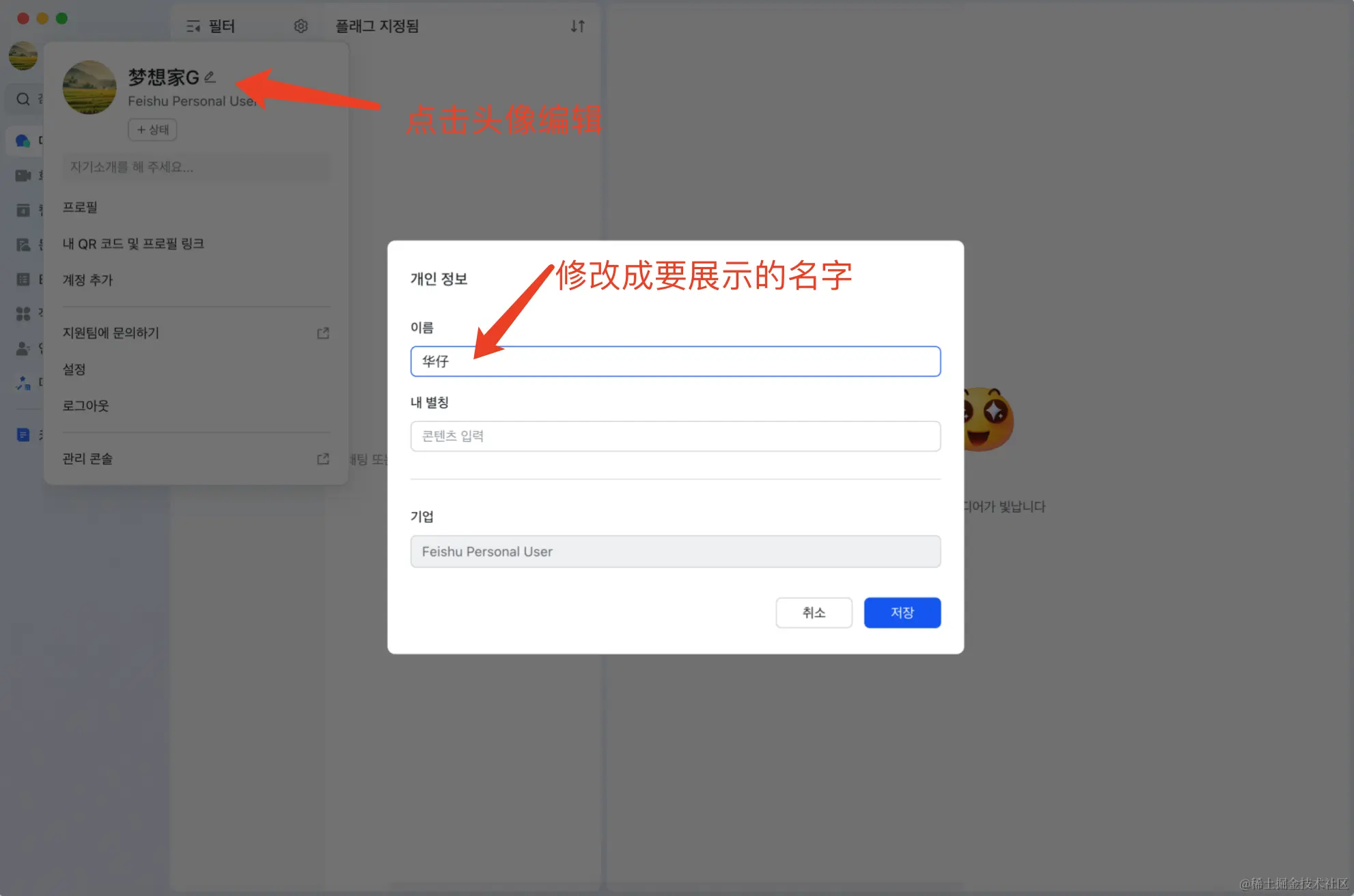 步骤2:切换语言后,点击头像,点击修改名称,这里都修改为要展示的名称