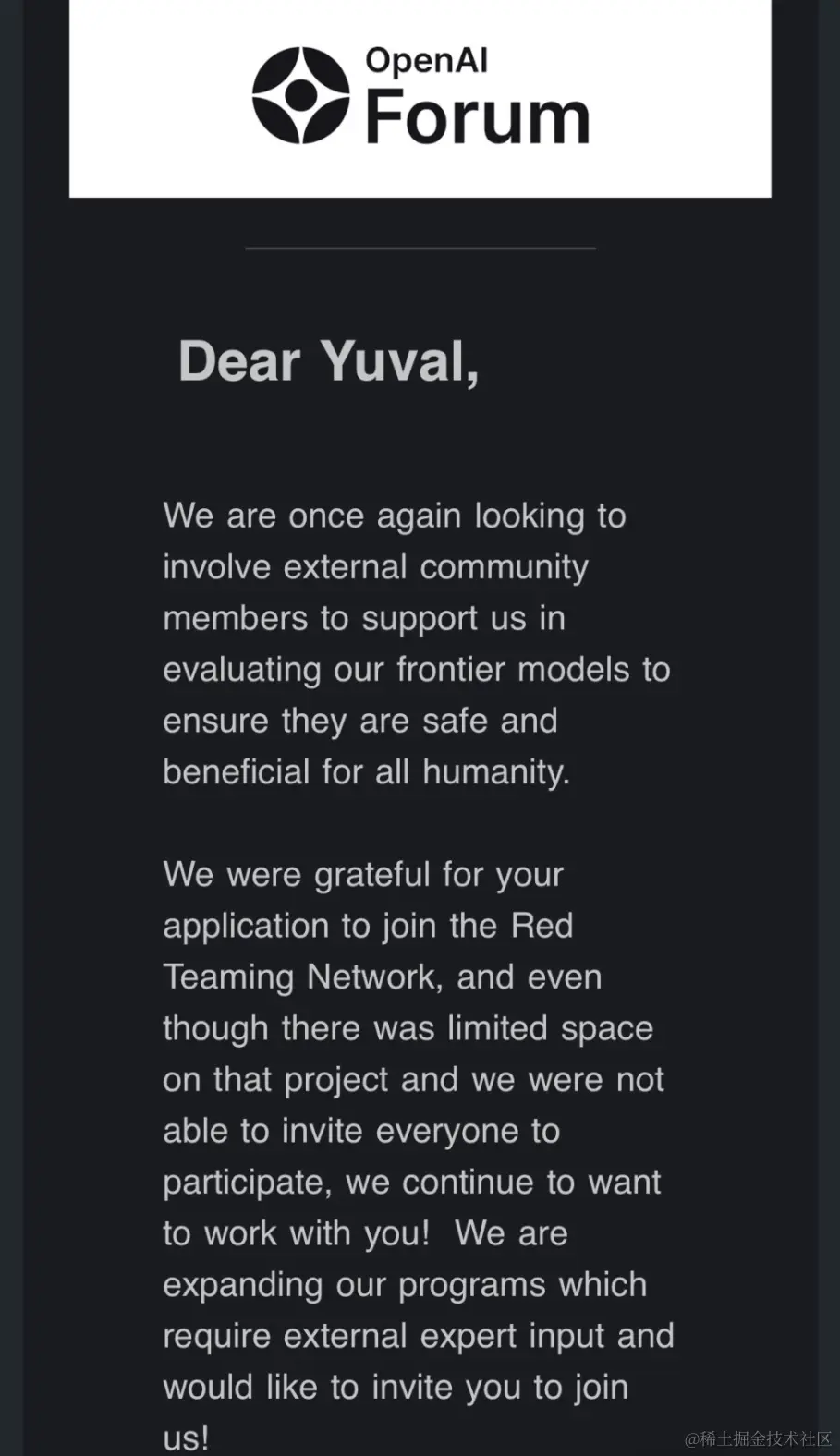 伴随最近的一系列动态,网络上频现人们展示从OpenAI处收到的红队测试邀约证明。