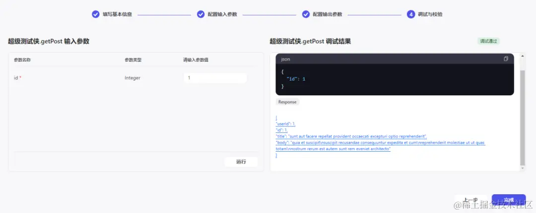 接下来配置输入参数。因为我们要测试的接口是jsonplaceholder.typicode.com/posts?id=2,…