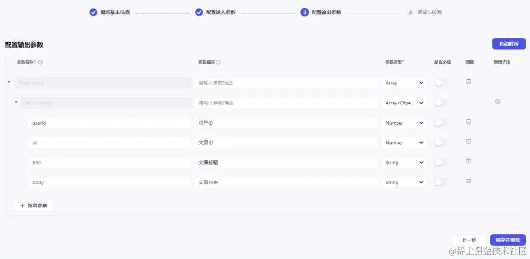 那我们点击自动解析,会解析出参数。