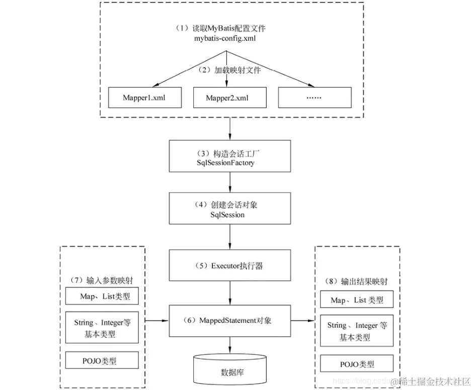sqlSessionFactory-》sqlSession-〉执行器-》结果处理与映射