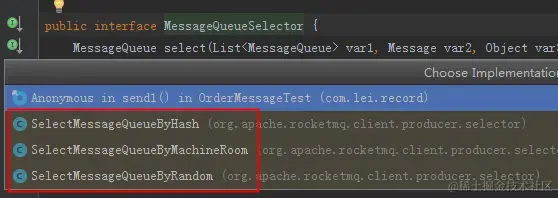 一个topic下有多个队列,为了保证发送有序,RocketMQ提供了MessageQueueSelector队列选择机制,他有三种实现: