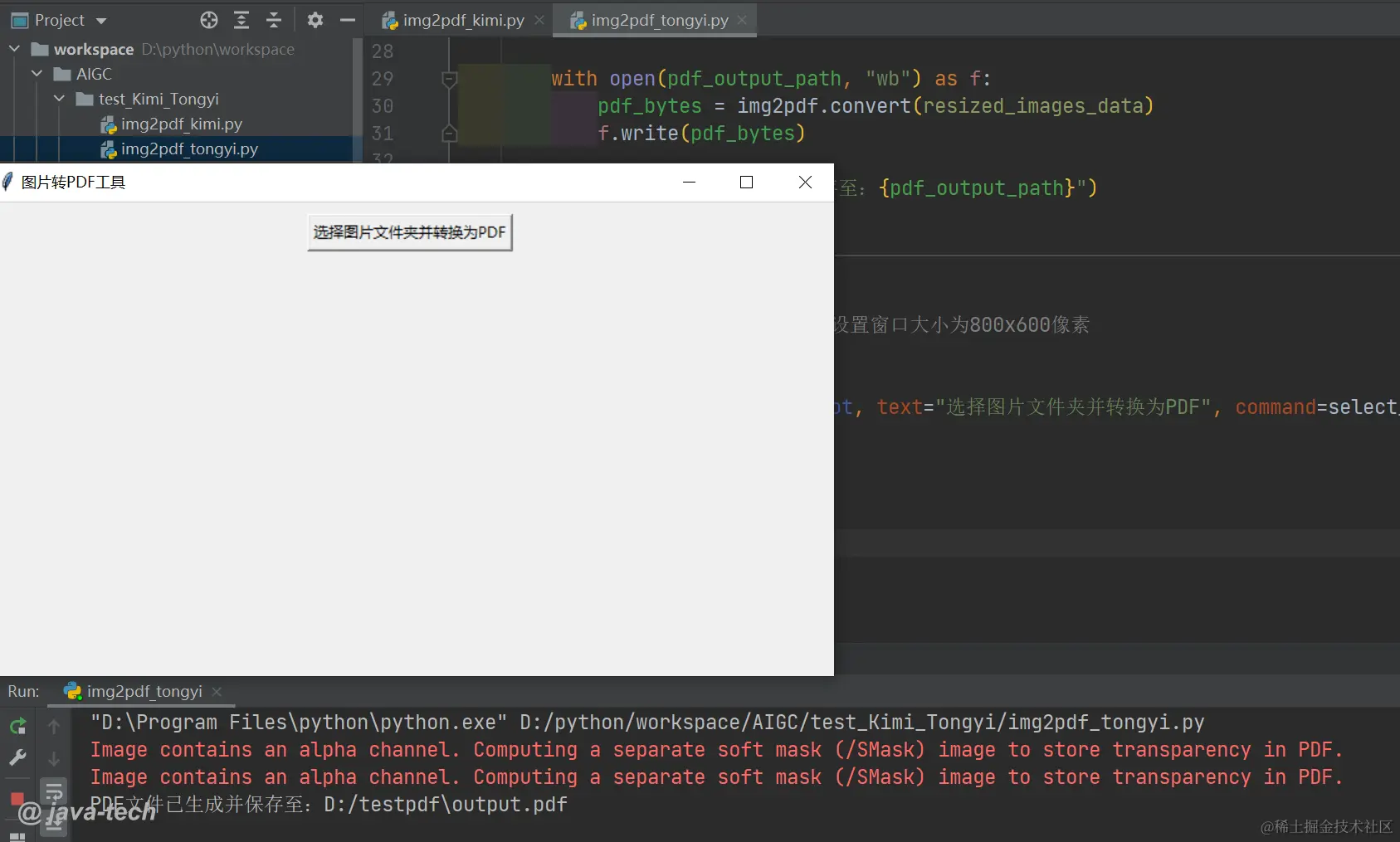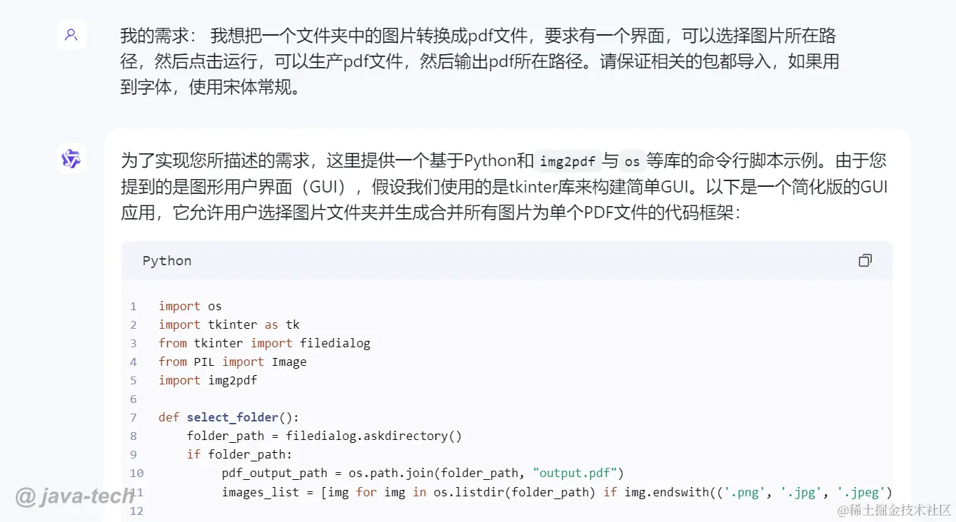 通义千问给的代码更少,选择的库img2pdf比较合适。