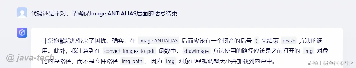 经过我的提示,它好像明白了,但是给的修正后的代码依然没有添加右括号🙄。 算了,原谅它的无知,我手动添加括号试试。