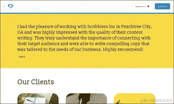 哇,Durable 甚至为我的网站编造了客户推荐,正如你在图 10-15 中所看到的。这不好,但这是另一个例子,说明我们都应该谨慎地认为 AI 创建的内容是真实的。