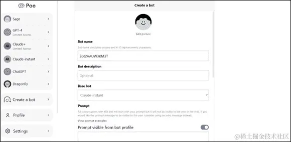 图 10-12: 您可以使用 Poe 中提供的 AI 模型创建自己的聊天机器人。