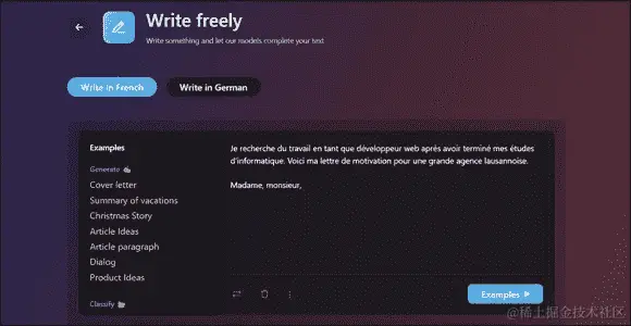 Cedille 是一个基于 GPT-J 的开源法语语言模型,这是一个与我们迄今讨论过的其他 GPT 模型不同的 GPT 模型,由 EleutherAI 团队开发。您可以在 https://cedille.ai/ 找到它。是的,即使您不懂一句法语,也可以使用它。基于语言的 AI 模型就是这样有用!