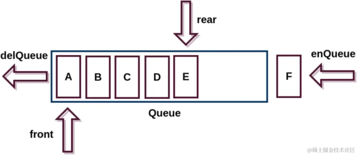 - dequeue():移除队列的第一(即排在队列最前面的)项,并返回被移除的元素