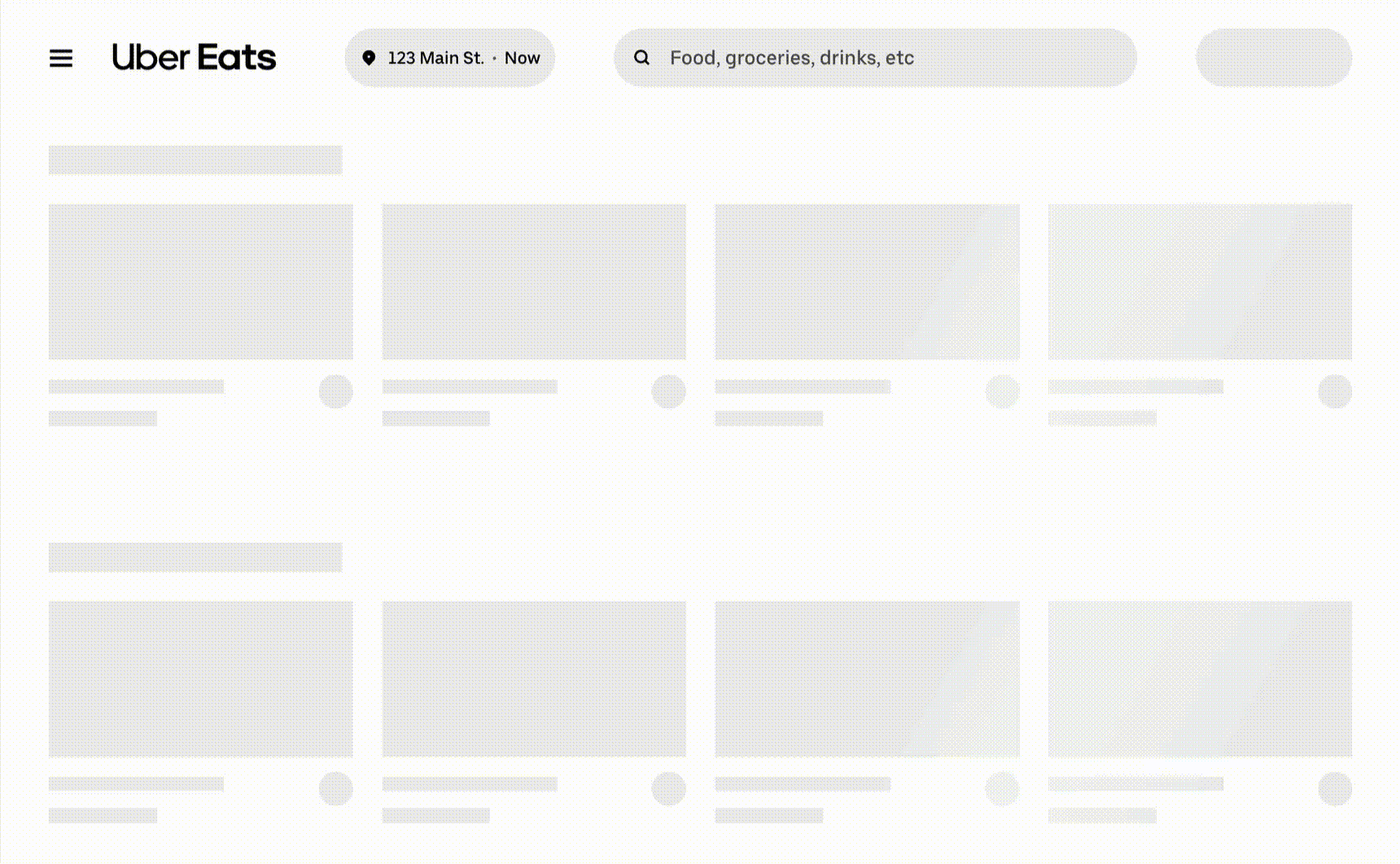 这种模式很常见了。以 UberEats 网站举例,在获取到实际数据前,会展示下面的加载效果。