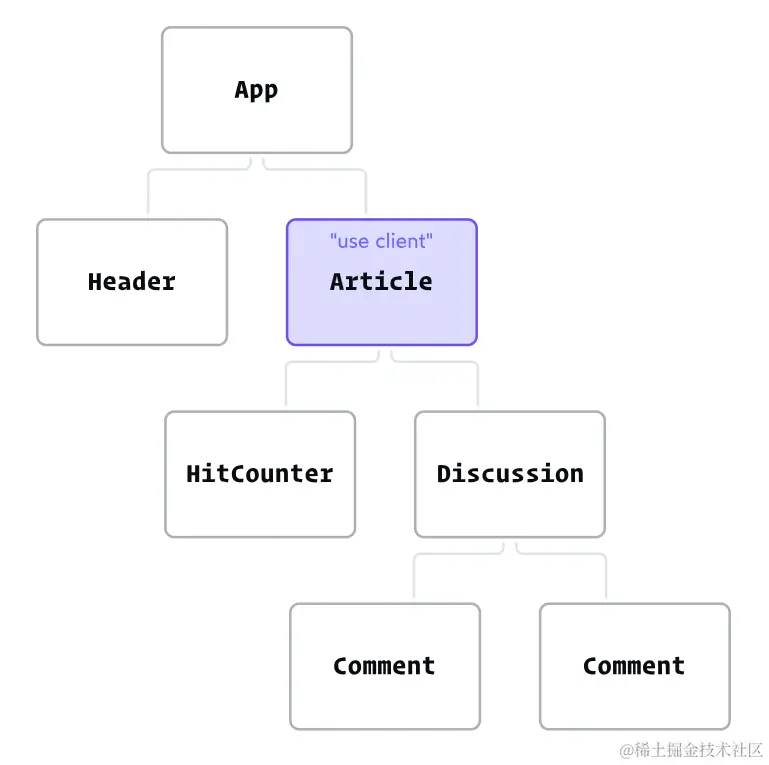 你观察到这里的问题了吗?当 Article 重新渲染时,任何下属子组件也会重新渲染,包括 HitCounter 和 Discussion。但是,如果这些是服务端组件,是无法重新渲染的。