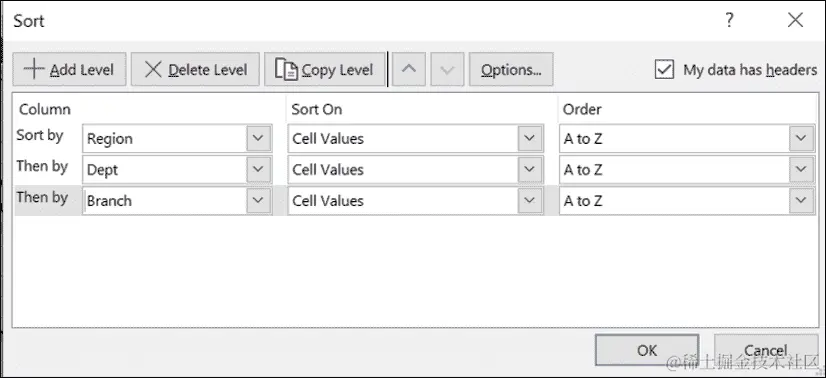 注意:排序必须按照小计的要求进行。错误的排序将导致错误的小计。