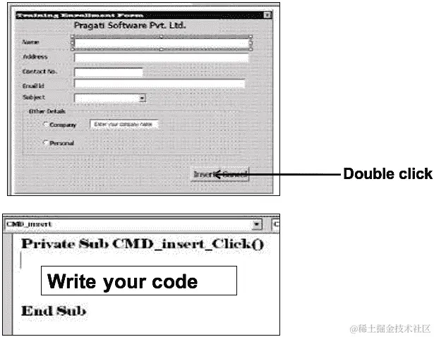 | Private Sub cmdExit_Click()EndEnd Sub |