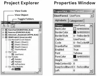 折叠项目的所有对象(插入表单和模块以用于插件的 Excel 文件)。
