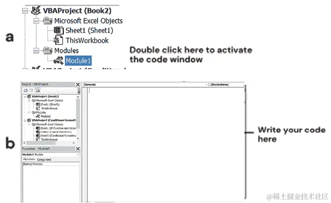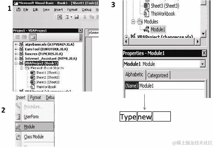 在编辑器中,转到插入 | 模块,创建一个新模块。