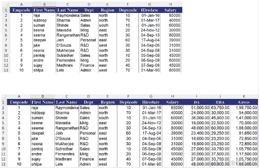 转到工资表(源数据)。