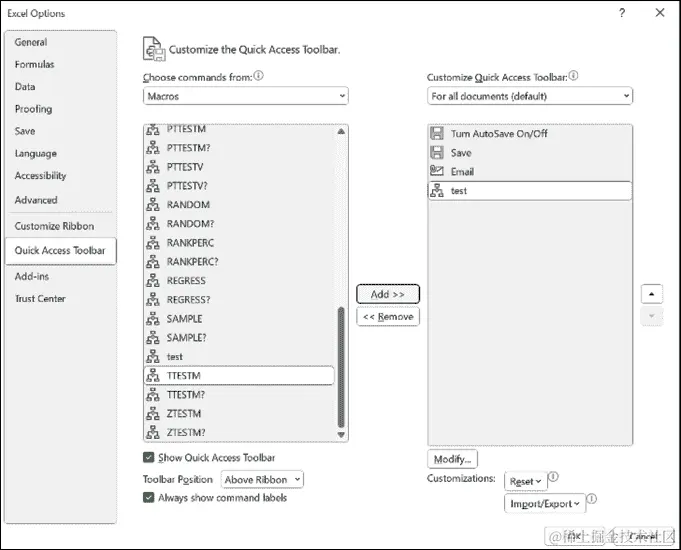 图 15.1:在快速访问工具栏上创建按钮