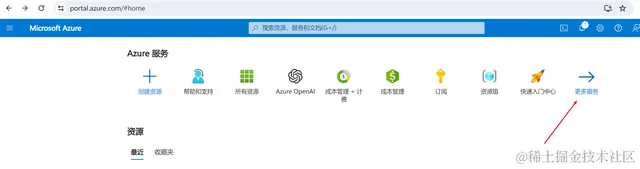 我们打开portal.azure.com/#home,点击更多服…