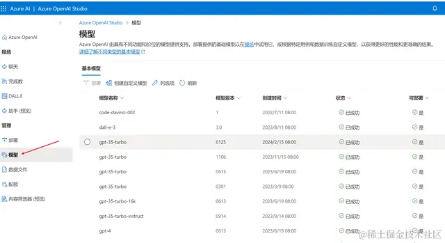 在管理部署页,我们先看看模型: