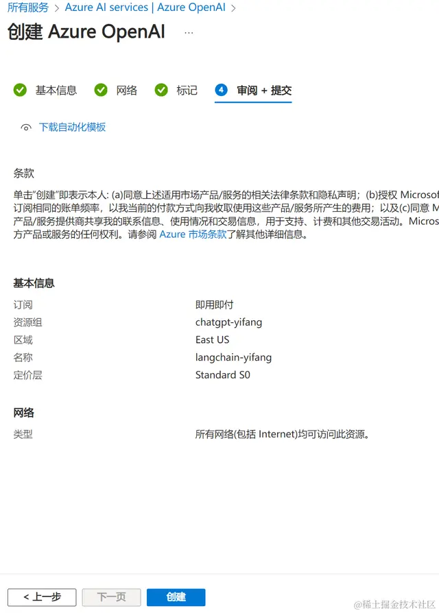 最后点击创建,等待部署,这个步骤挺快的: