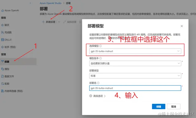 我们再回到部署页,输入:gpt-35-turbo-instruct: