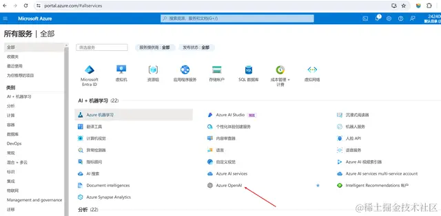 我们点击Azure OpenAI: