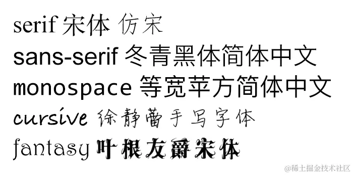 参考链接:serif,sans-serif,monospace,cursive和fantasy