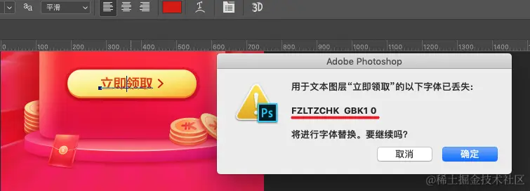 给大家列举一个常见的场景。很多时候,前端同学拿到的视觉稿是 psd 稿,需要用 PS 软件打开源文件,才能看到里面的文字是什么字体。在 PS 软件里,当我们用光标选中字体的时候,出现了下面这种场景: