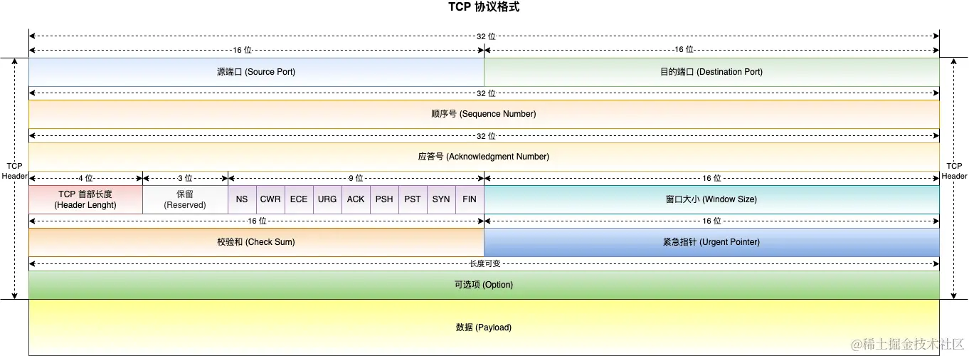 - 源端口(Source Port):指发送端(客户端)使用的端口号。在 TCP 连接中,源端口标识了发送数据的应用程序或进程。