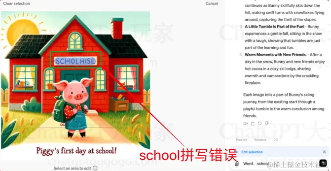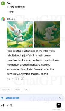 - 选择由 DALL·E 生成的图像,点击“编辑”,在对话面板中输入修改指令。