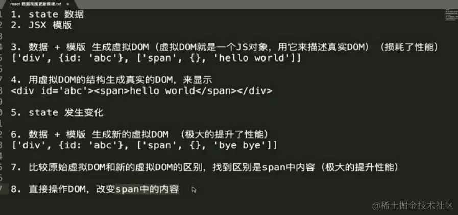 同级比较,当数据发生改变会生成新的虚拟dom,做比较,