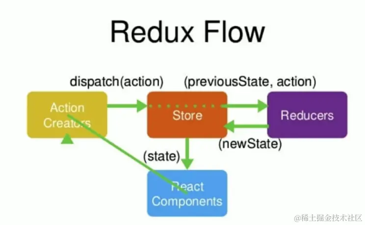 Redux 应用中数据的生命周期遵循下面 4 个步骤: