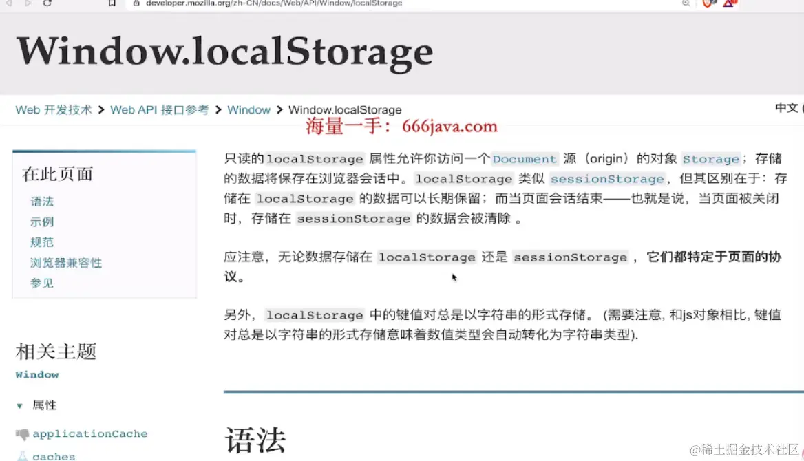 LocalStorage 文档地址:developer.mozilla.org/en-US/docs/…