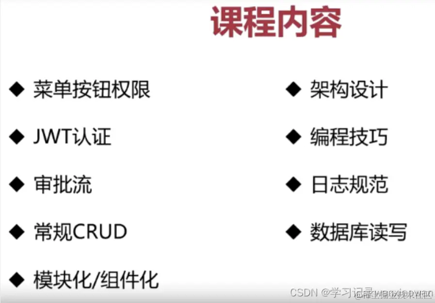 菜单按钮权限,JWT认证,审批流,常规的CRUD,模块化,组件化