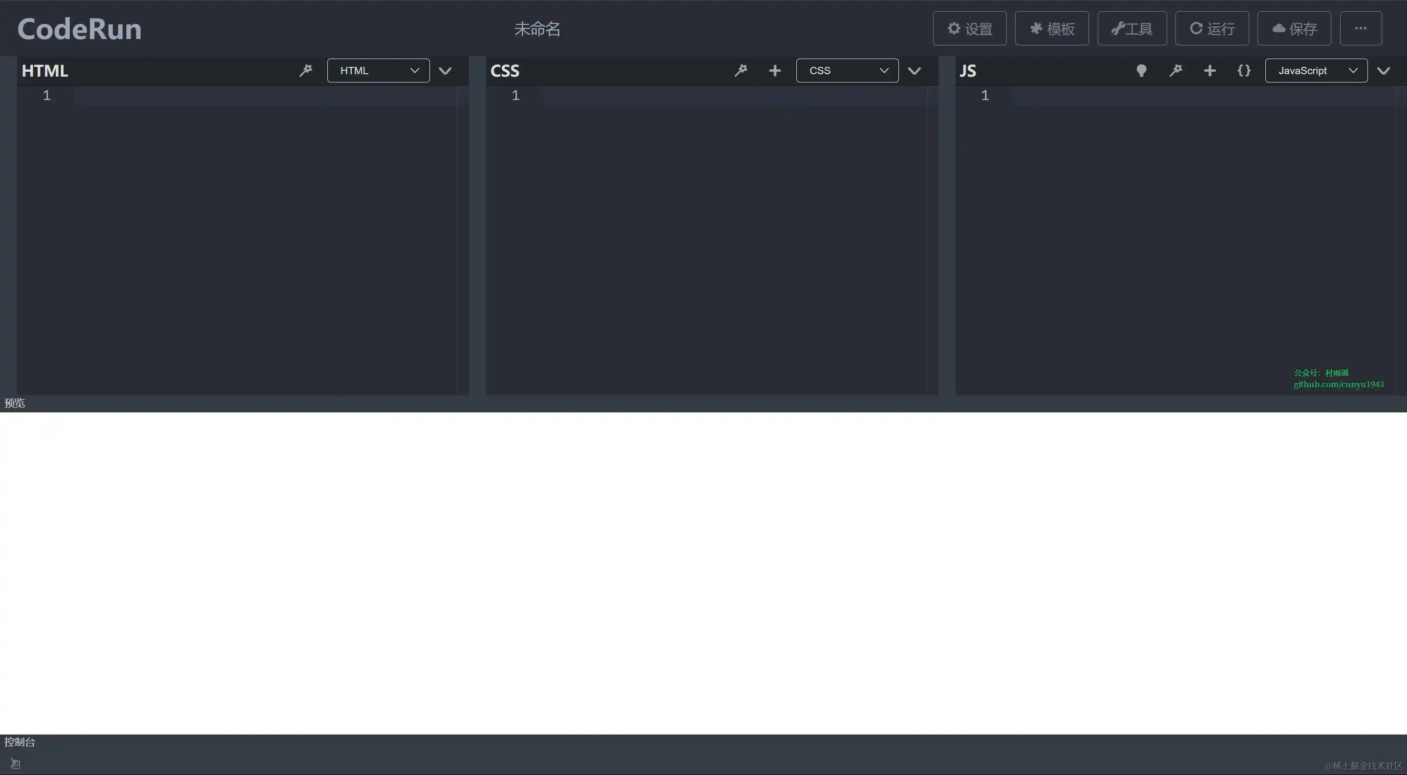 一个纯前端实现的在线代码运行预览工具,类似 codepen、jsbin、jsfiddle 等网站。