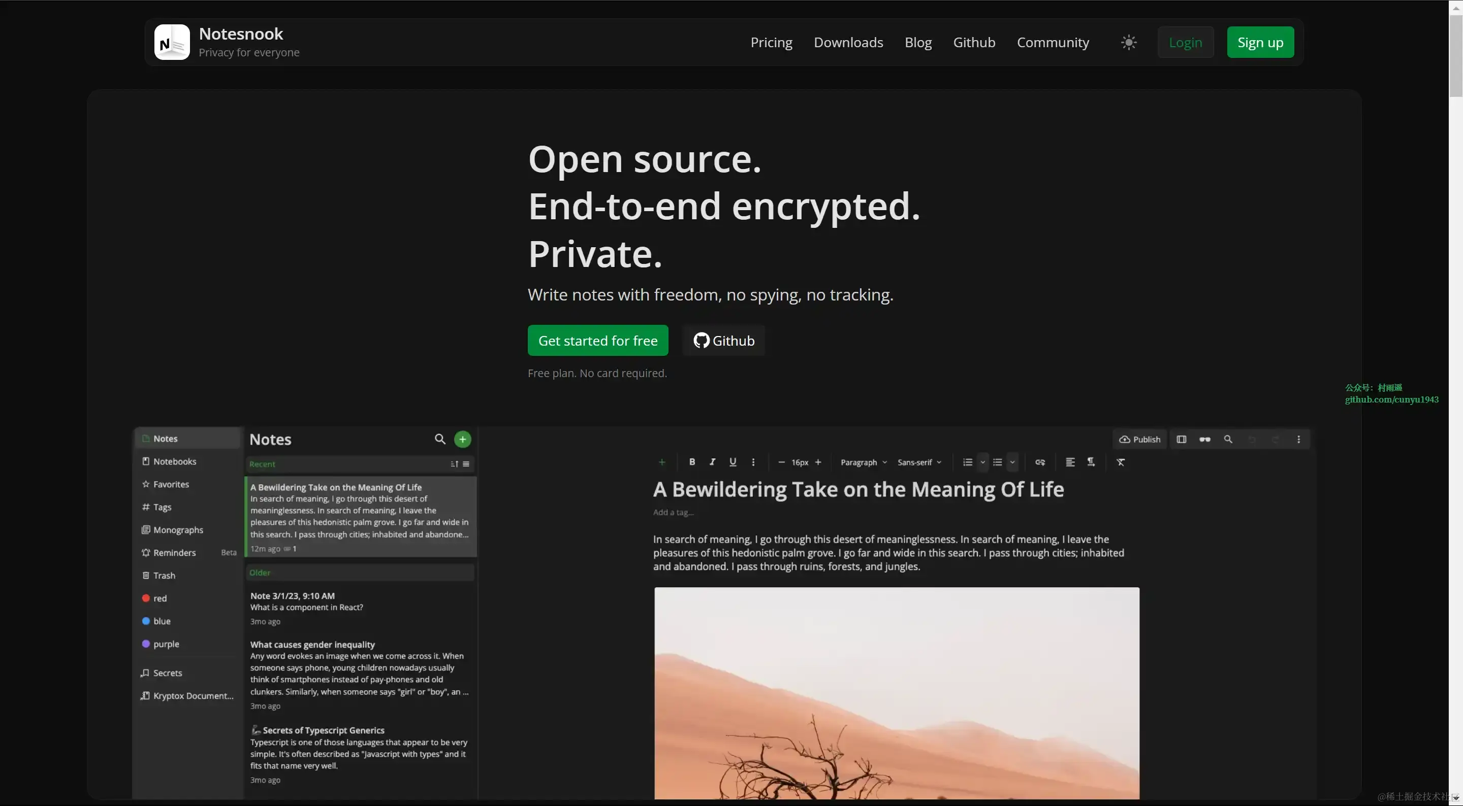 一款开源的,支持端到端加密的的笔记软件,可以把它当作开源版本的 Evernote。