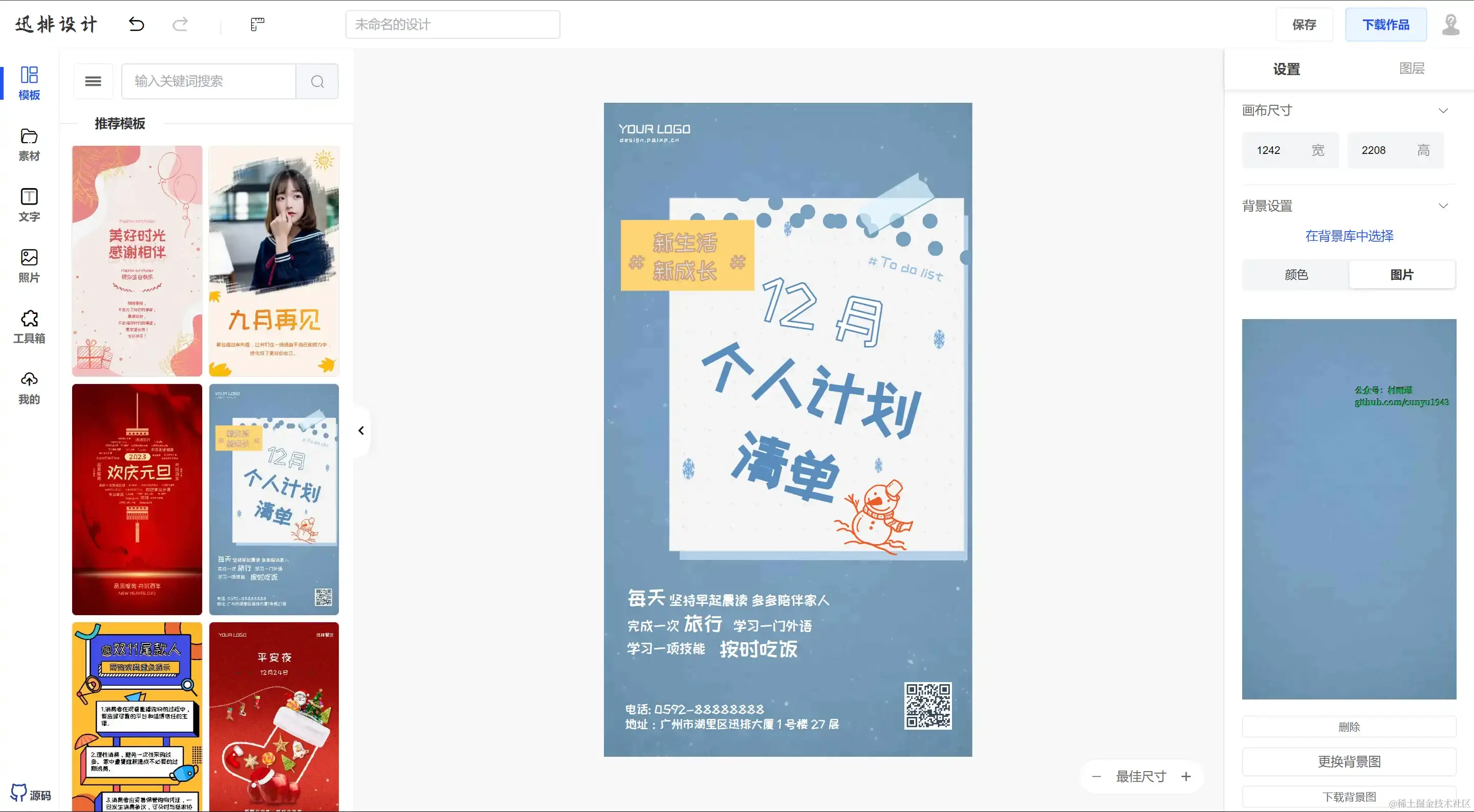 一款漂亮且功能强大的在线海报设计器,图片编辑器,仿稿定设计,适用于多种场景:海报生成、电商产品图、文章长图、视频 / 公众号封面等。