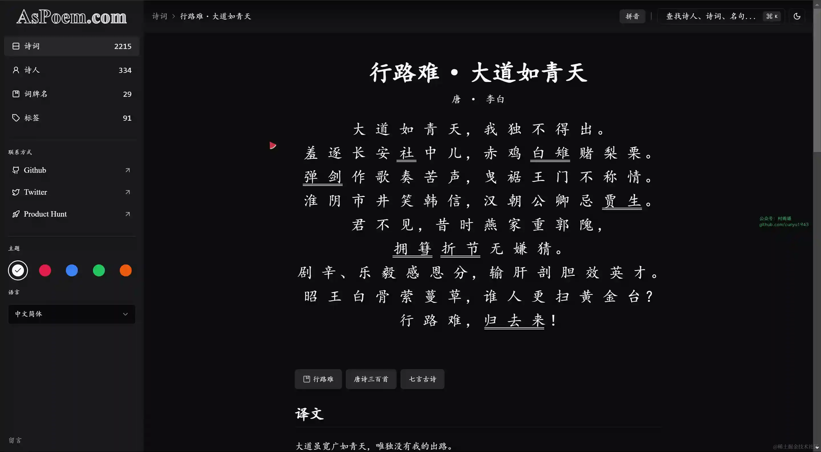 现代化的中国诗词学习网站,提供全站搜索、拼音标注、注释和白话文翻译等功能。无论您对唐诗宋词感兴趣还是想深入学习,都是您的理想选择,从这里开始您的诗歌之旅!