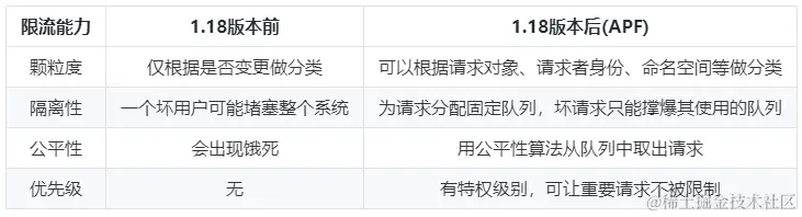 apiserver限流能力的发展分为两个阶段: