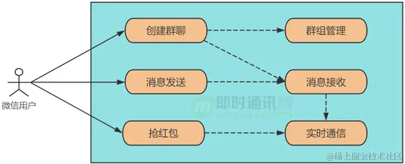 微信群聊系统中,会涉及到如下核心组件和协议: