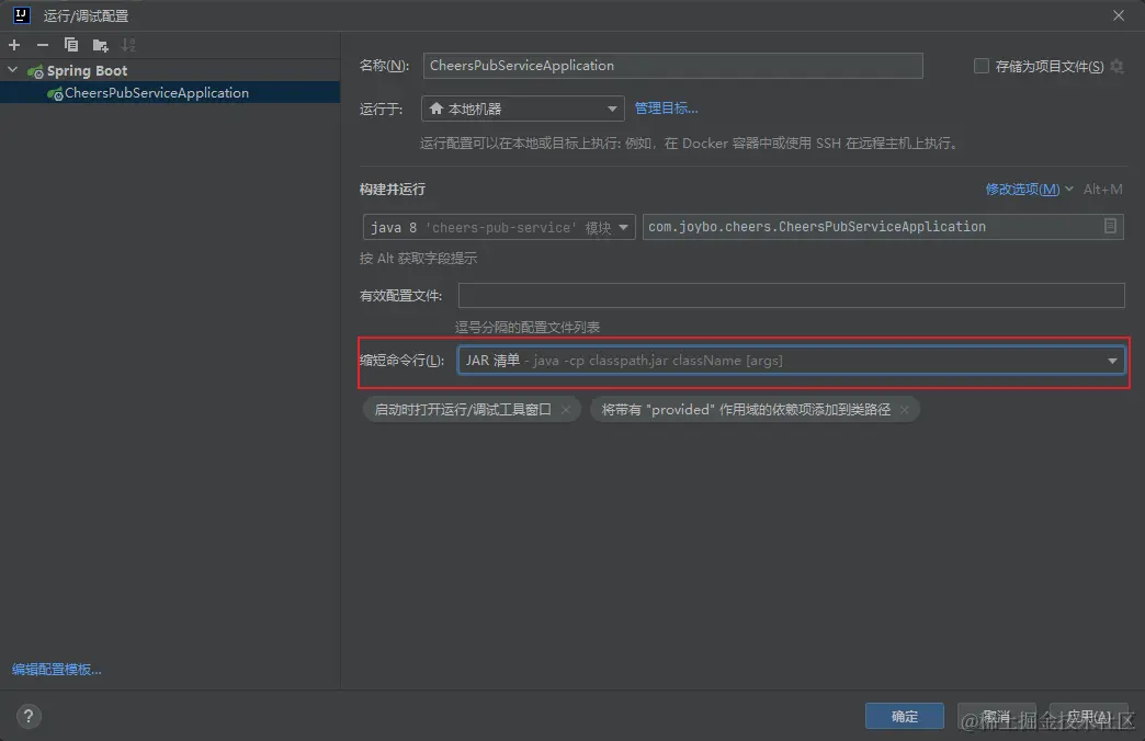 2.运行 RuoYiApplication 时出错。命令行过长。