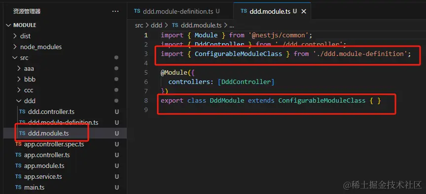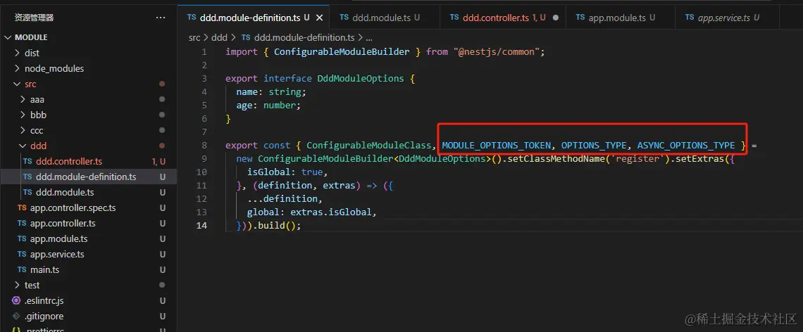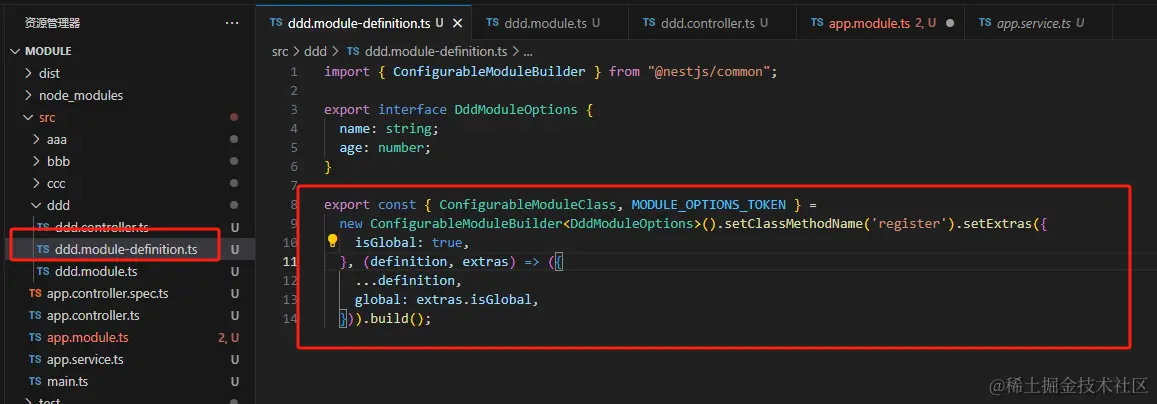 new ConfigurableModuleBuilder<DddModuleOptions>().setClassMethodName('register').setExtras({
