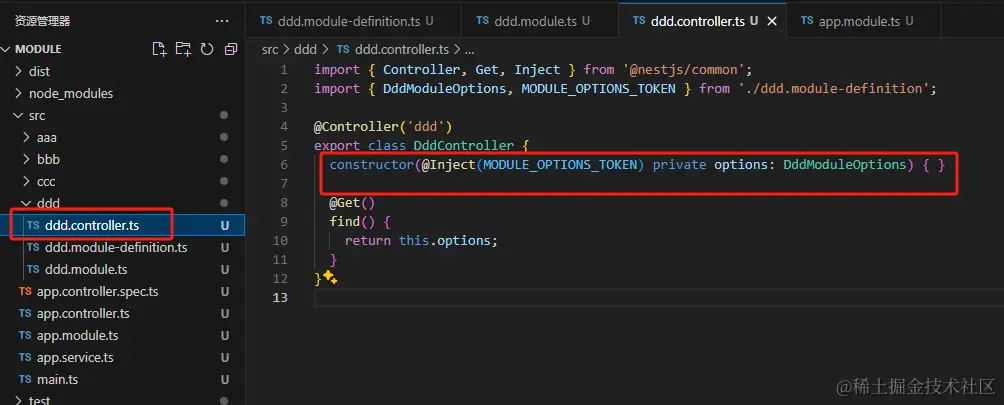 而且这时候我们把传入的 options 通过 useValue 创建的 provider,这样模块内部就可以注入它了。