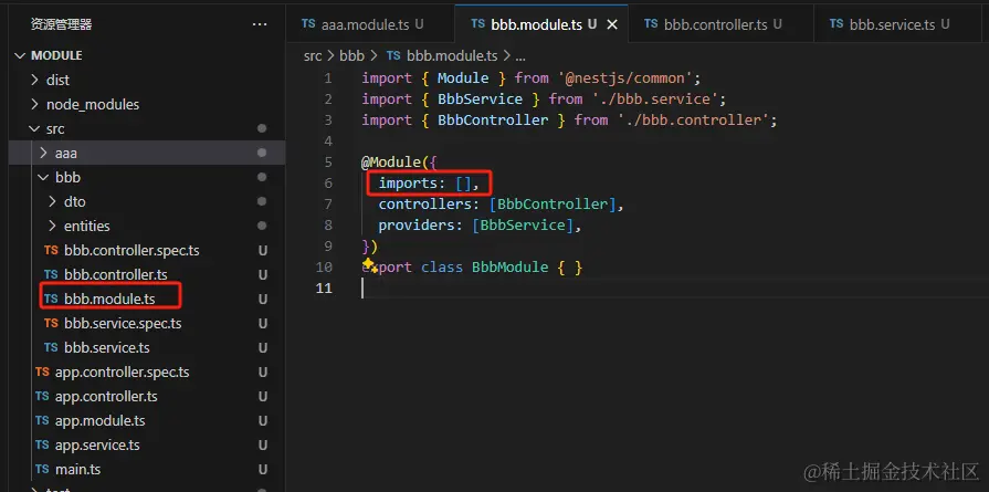 - 使用 imports 属性来导入其他模块,这样就可以在整个应用范围内共享和使用已导入模块的控制器和服务。