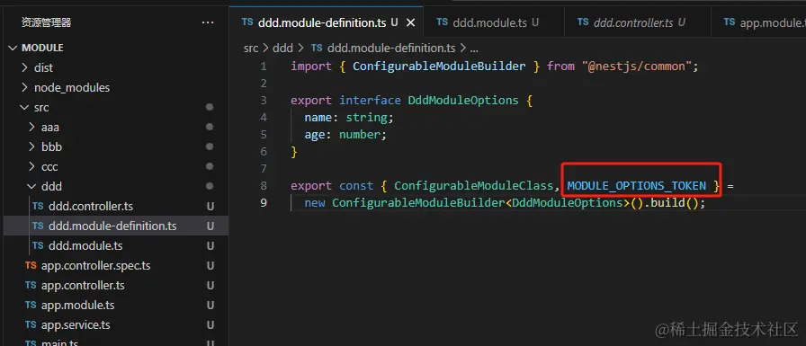 返回的 ConfigurableModuleClass、MODULE_OPTIONS_TOKEN 分别是生成的 class 、options 对象的 token。