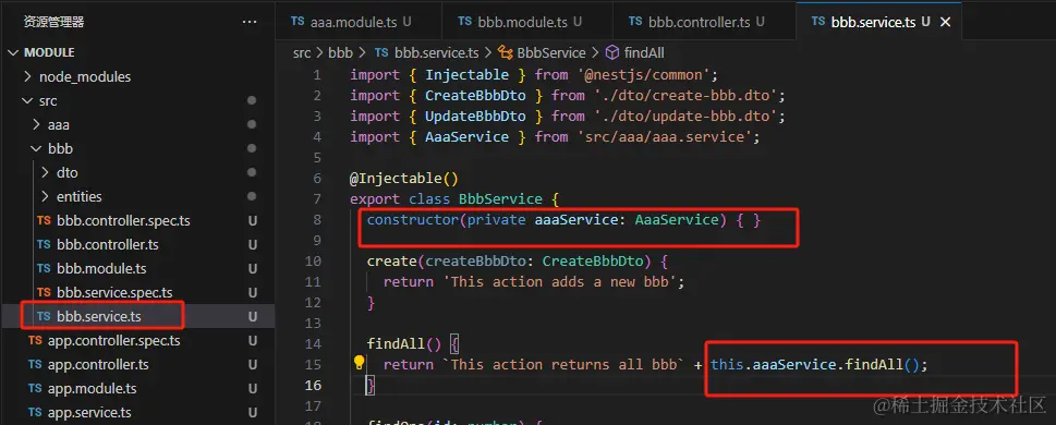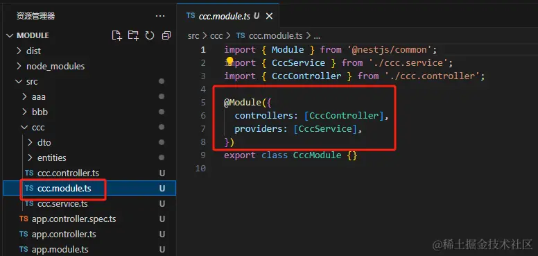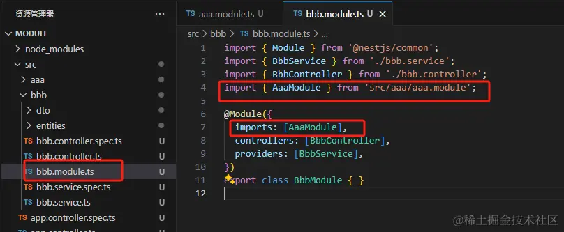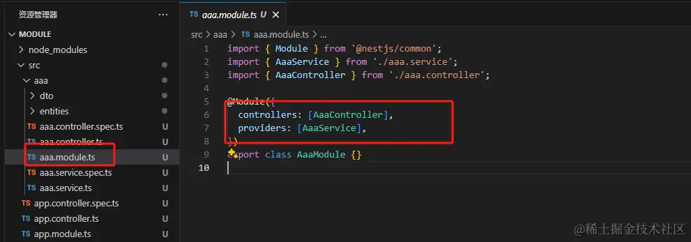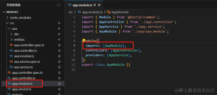 当我们使用nest g res aaa 创建一个CURD 模板的时候 nestjs 会自动帮我们引入模块