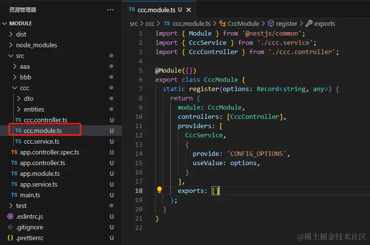 在实际项目中 你可以自己创建动态模块,也可以使用nest提供的 ConfigurableModuleBuilder,它只是对我们定义 register、registerAsync 的过程做了封装。