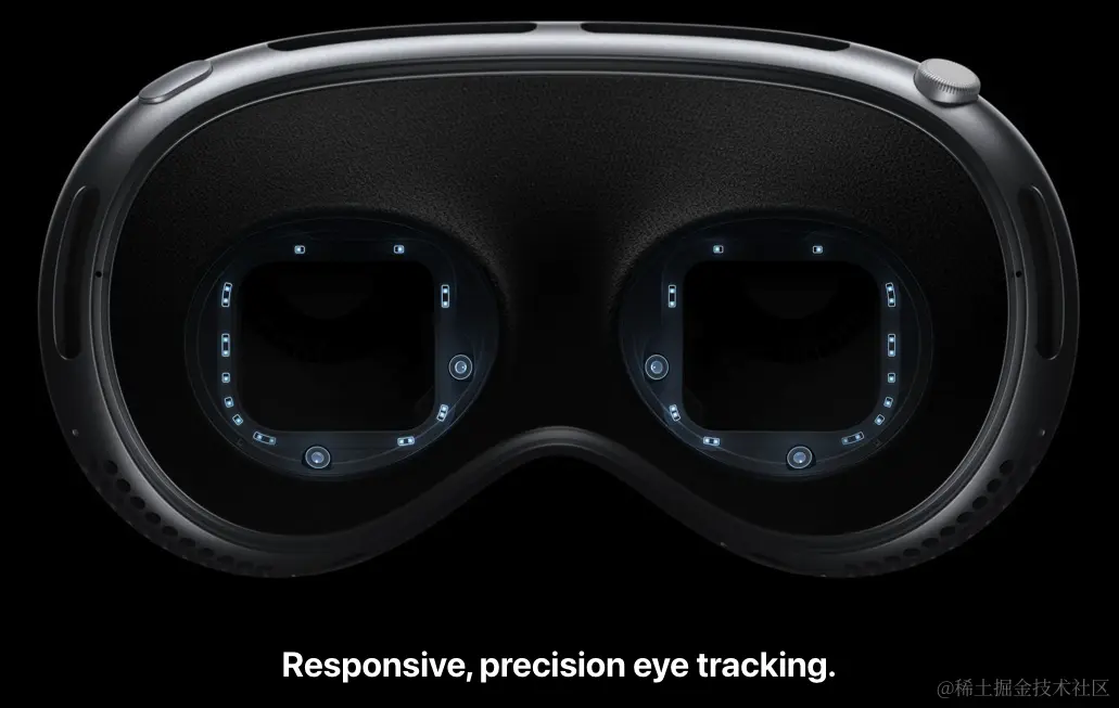 苹果通过遍布Vision Pro眼部周围的传感器,实现了精读极高的眼球追踪技术: