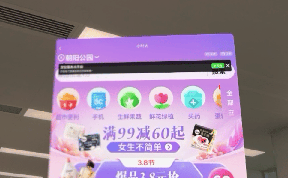至于原始适配逻辑,如果有曾经在 iPad,或者M系列芯片 Mac电脑上运行手机App的经验,就能大致明白他们在Vision Pro上的适配逻辑了,就是在屏幕上创建一个手机屏幕大小的“模拟器”,让app在上面运行。这里以我们“京东到家”的app为例