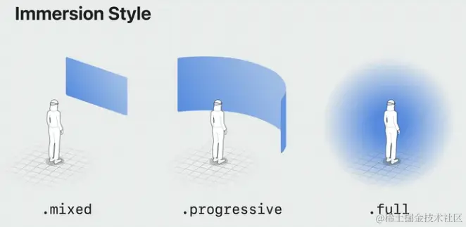 }.immersionStyle(selection: $currentStyle, in: .mixed, .progressive, .full)
