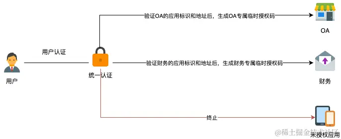 • Third-party Application:第三方应用。以前文单点登录流程为例,即为业务系统1和业务系统2。